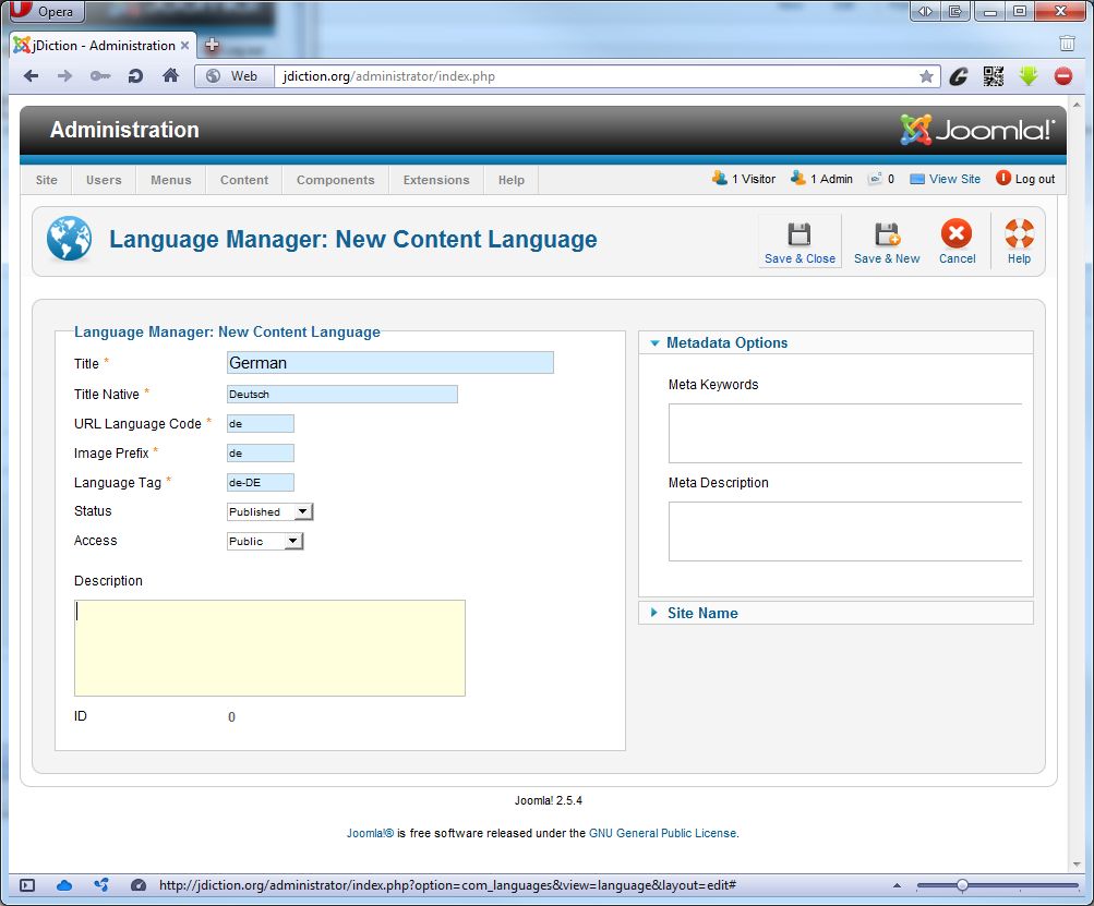 IMPORTANT: The Language Tag must match the installed language package, so if you install the jgerman translation you have to use "de-DE" as translation Tag and not "de-AT" or "de-CH".